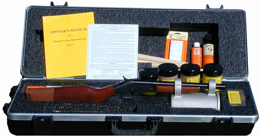 The Bridger™ Shoulder Line Gun serves many uses in the marine, construction, and rescue industries. With practice, the gun can be ready for line deployment in seconds. Should the Bridger™ gun save one human life, it more than repays its moderate first cost.